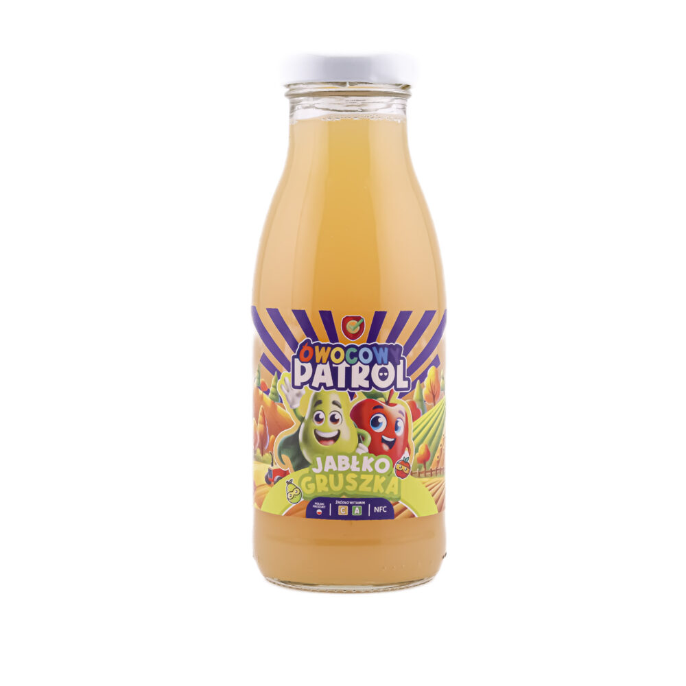 Ten sok to subtelna, naturalna słodycz, która sprawia, że dzieci same sięgają po bidon. Jabłka i gruszki z naszego sadu tłoczymy na zimno, by zachować ich naturalny smak i wartości – bez kompromisów.